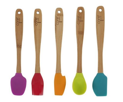 The set I bought only had the purple, orange, and green models, but it was only $4 instead of the $12 that Amazon wants for this set of five mini spatulas. I hesitated when I picked them up at the store. I had seen them in the weekly ad, but I had been given a much shorter mini spatula several years ago that was quite frustrating to use. So, of course I hesitated. But, I love them!